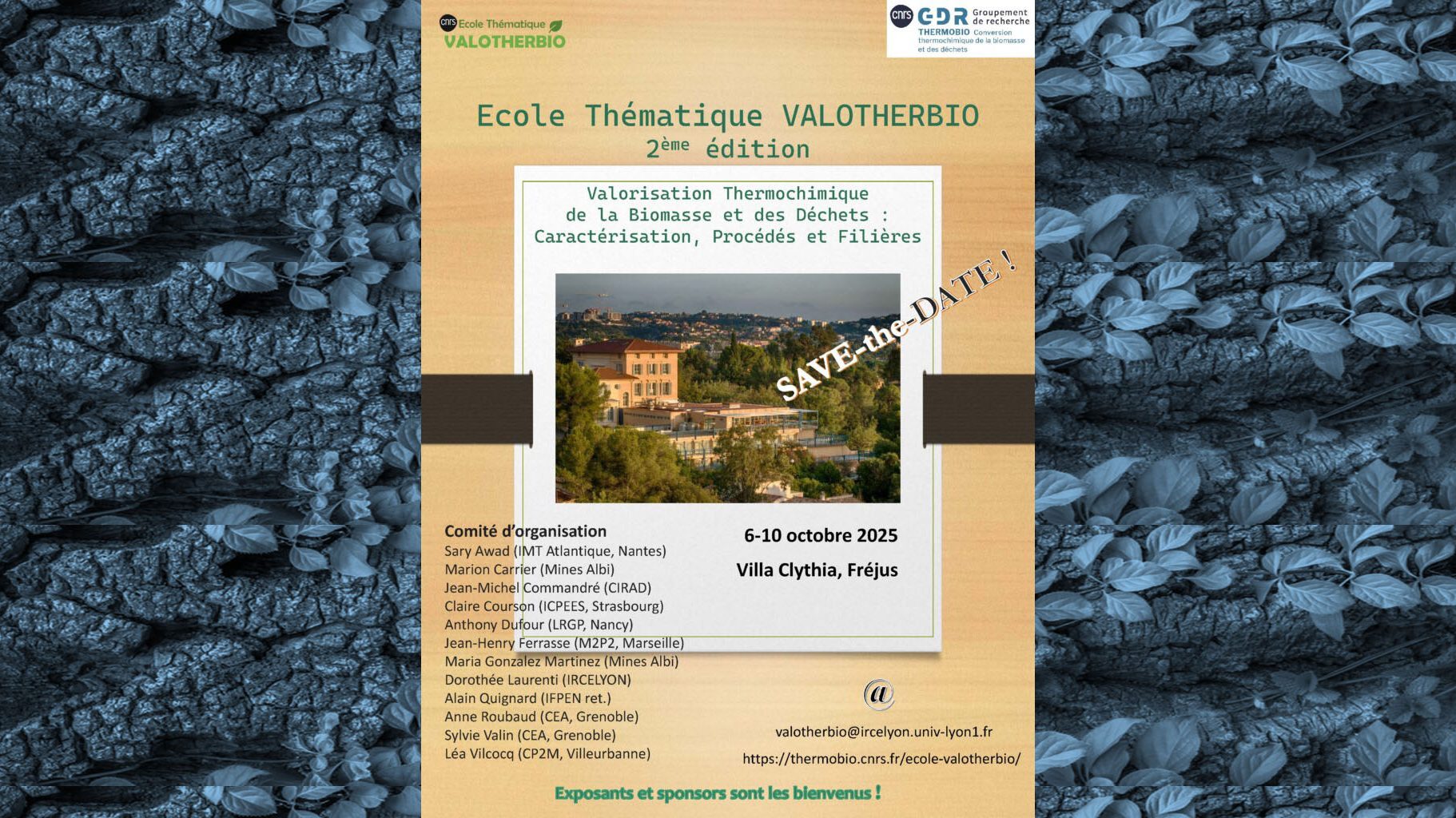 - VALOTHERBIO 2025: Ircelyon co-organized the 2nd edition of this thematic school dedicated to the thermochemical valorization of biomass and waste.